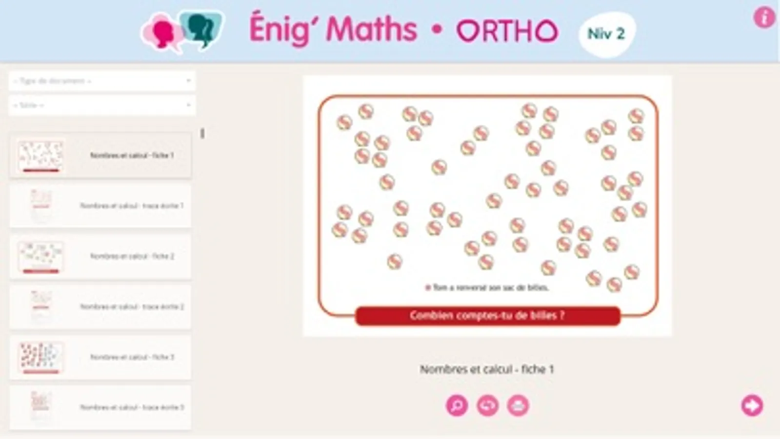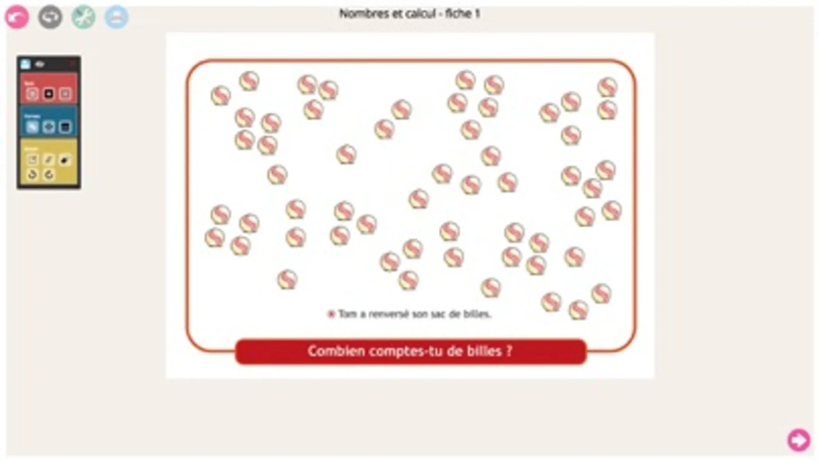 L’application de vidéo-projection permet de projeter les situations-problèmes, d’ajouter des notes, masquer ou mettre en valeur des éléments via la boite à outils graphiques. Des fiches permettant de décomposer les situations-problèmes, ainsi que les corrigés y sont également disponibles et imprimables.