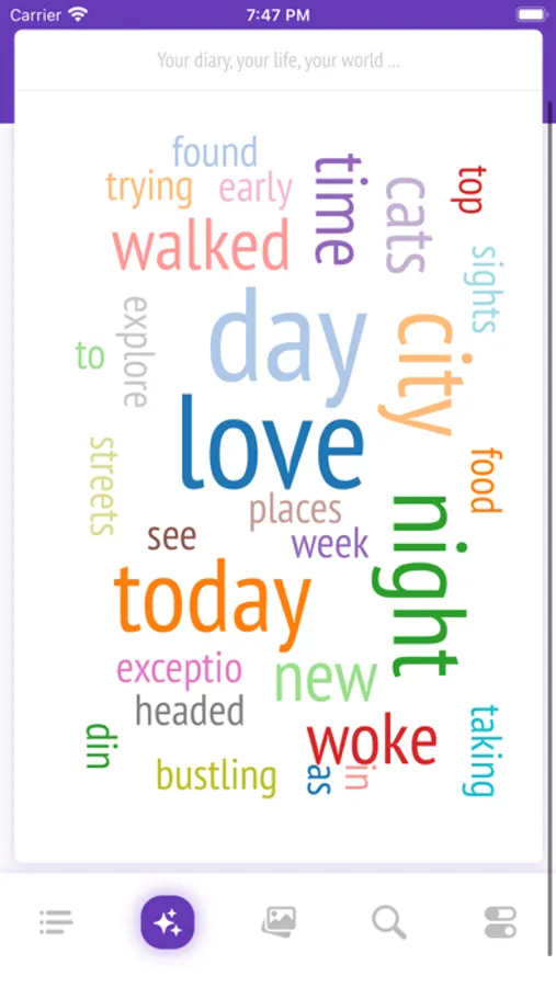 - a place where most used words in your diary are displayed in one place in a beautiful way
