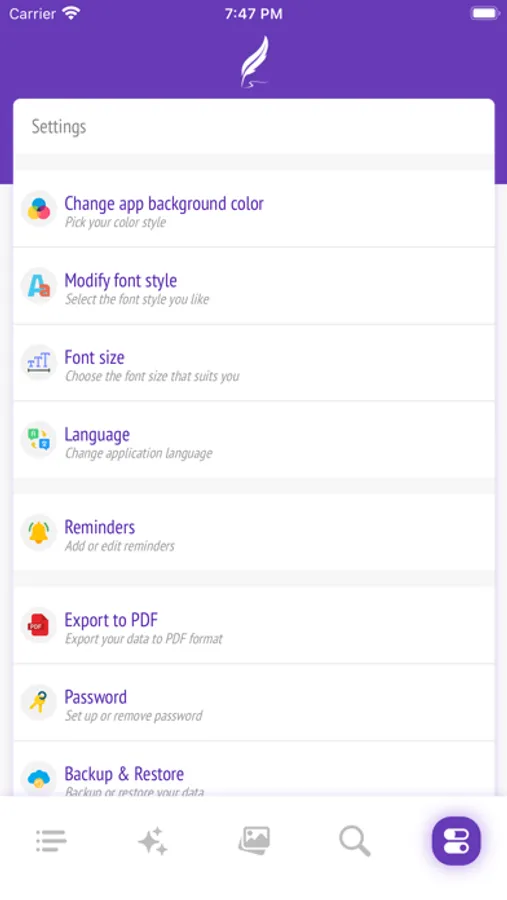With that in mind we though to put our ideas, regarding to what WE believe a journal should be, in making a simple, intuitive and comprehensive diary application that will be your partner who listens but doesn't share anything that you think and feel.