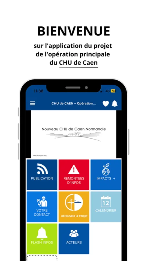 Cette application est destinée à l’ensemble des parties prenantes qui souhaitent s’informer sur le Projet CHU CAEN Opération Principale.