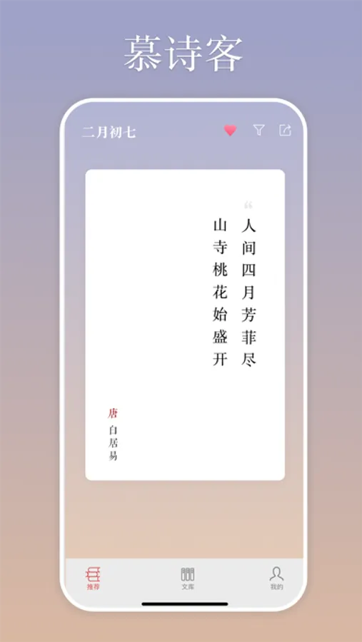 慕诗客App为用户提供了一个方便快捷、全面深入的古诗词阅读平台,不仅可以帮助用户欣赏诗词之美,更能够了解和传承中华优秀传统文化。