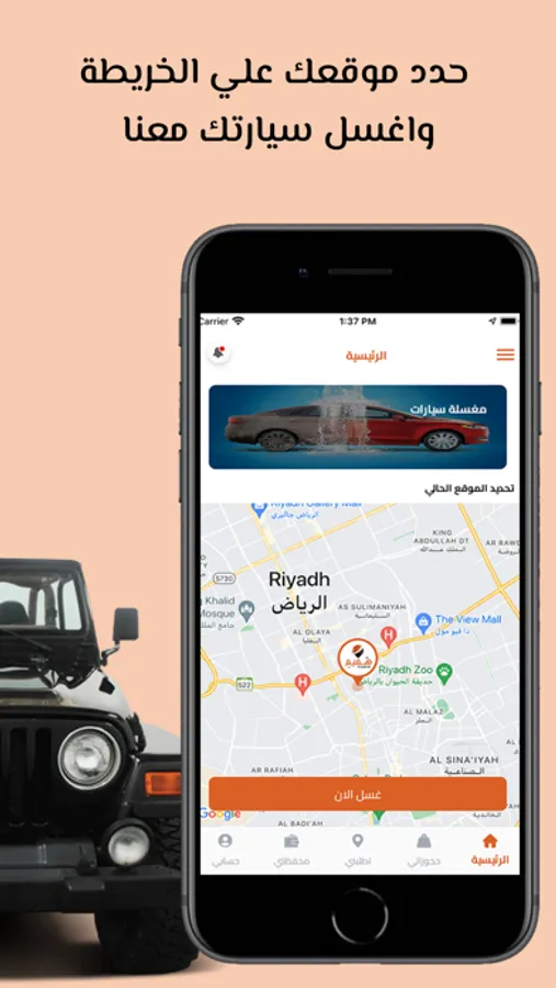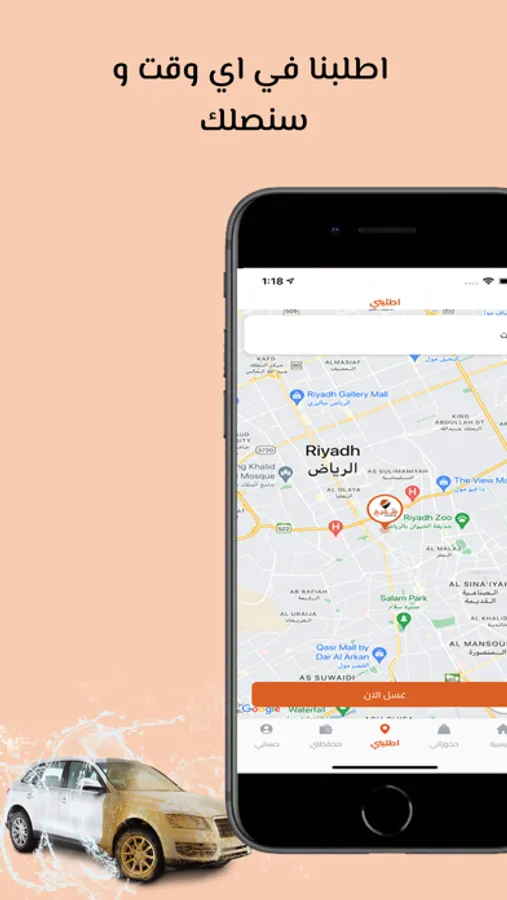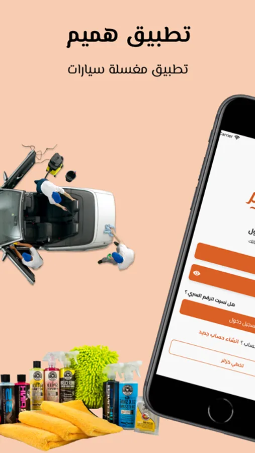 تطبيق للتحميل مجانا لتقديم خدمة غسيل السيارات لاي عميل في مكان تواجده في كل مدن المملكة دون الحاجة للذهاب الى لمغسلة.