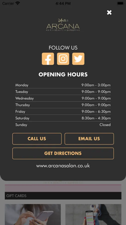 The Anita's Arcana booking app allows clients to log on and make bookings online under their own profile 24/7. Clients can track loyalty points as well as looking at historic and future bookings and get directions for their favourite salon.