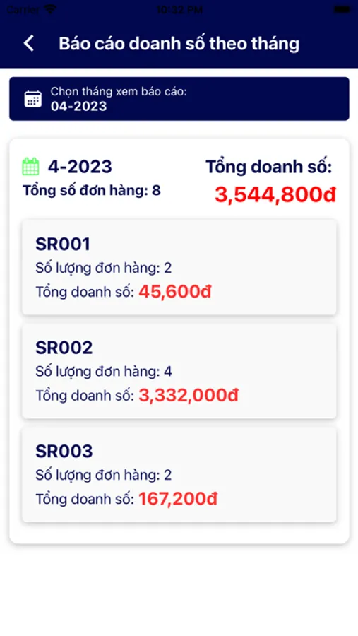 - Quản lý doanh thu theo ngày, tháng, quý của nhân viên bán hàng.