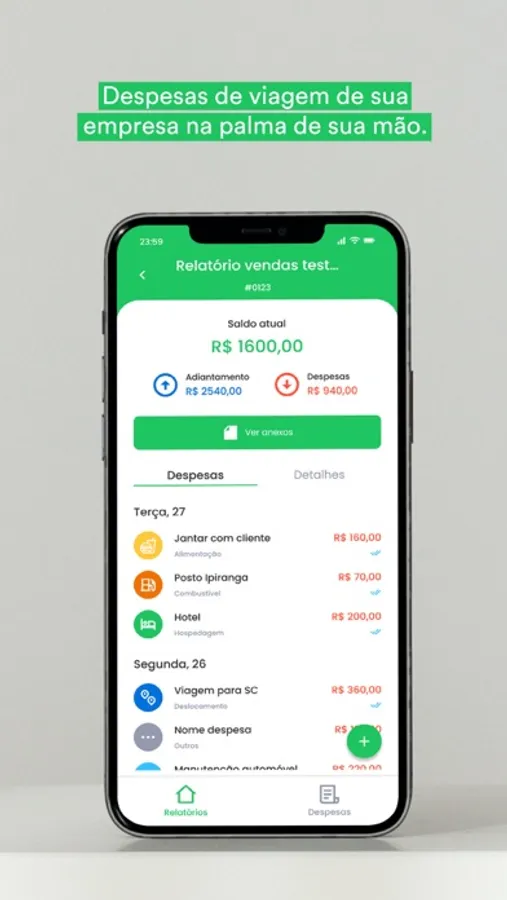 O Expenses conta cadastro de relatórios de viagem e cadastro de despesas, além de permitir o anexo de arquivos.