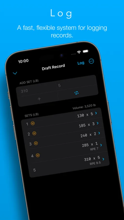 Lift Assist has been designed with speed and flexibility in mind. There’s no need to waste time creating a user account or building and maintaining complex workout plans. Simply add a folder for the lift you wish to track and start logging immediately.