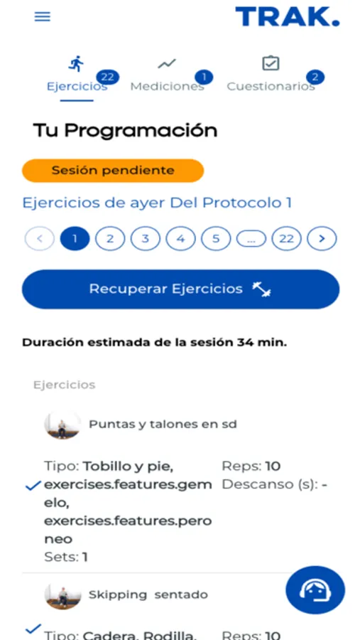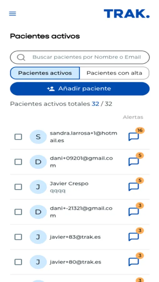 TRAK es la plataforma de telerehabilitacion y monitorización de pacientes para profesionales sanitarios.