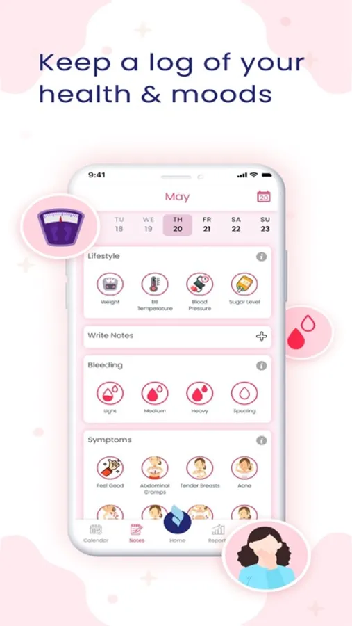 A Free, user friendly menstrual app that allows you to track your period, flow intensity, symptoms, PMS, moods, lifestyle and overall health with smart predictions and reminders