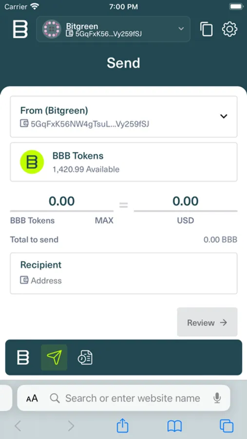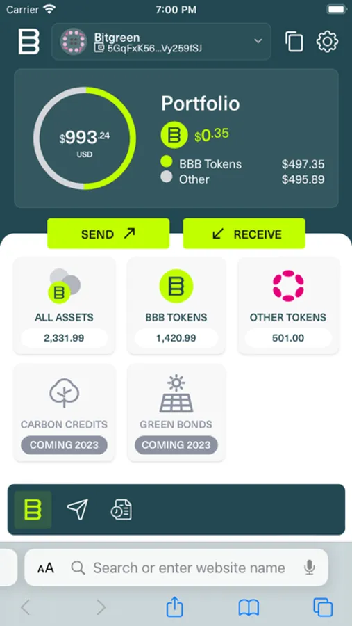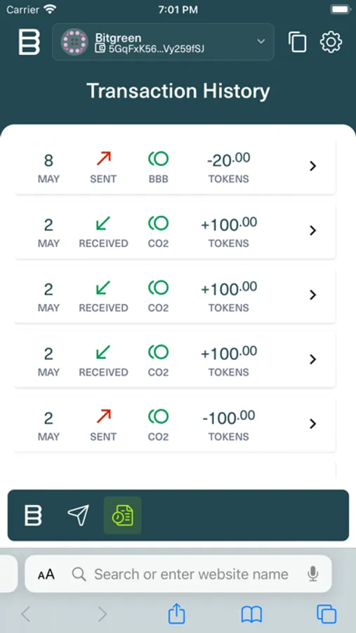 The Bitgreen blockchain enables everyday people to participate in activities that create a better world, such as renewable energy, carbon credits, the Habbit Game, and more. The Bitgreen native wallet can be used to hold and transfer "BBB" network tokens and other Web3 tokens built using the Substrate SDK for the Polkadot and Kusama ecosystems. This browser wallet is developed, tested, distributed, and maintained by the Bitgreen Switzerland Association and its members, for the benefit of users who wish to access decentralized applications featured on the Bitgreen blockchain network.