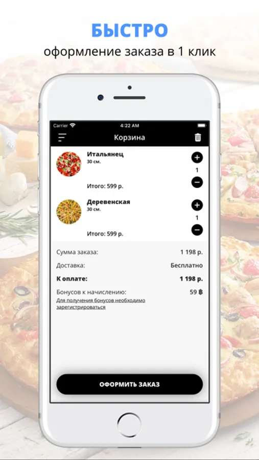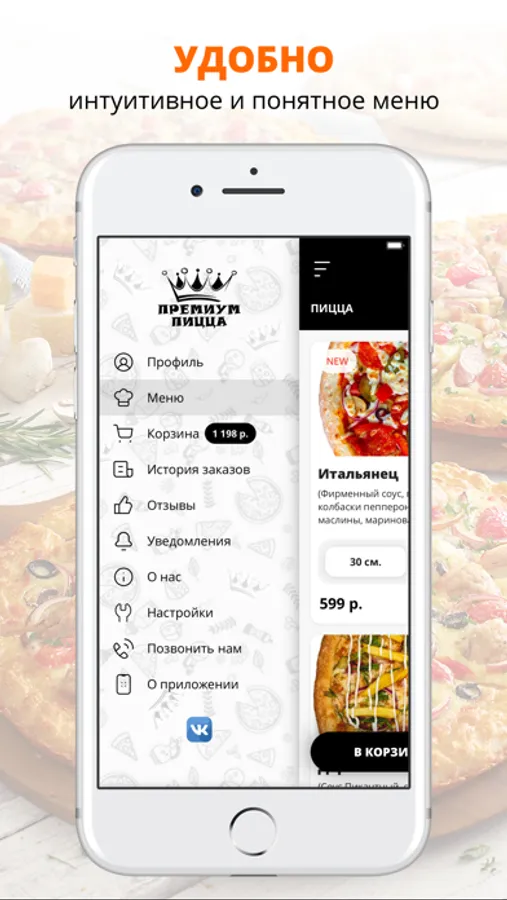 Воспользуйтесь удобным приложением для заказа еды «Премиум Пицца».