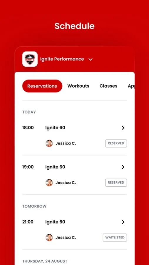 For members of Ignite Performance to reserve their place in a class, sign up for gym events, and general account management like updating headshots and credit card on file.