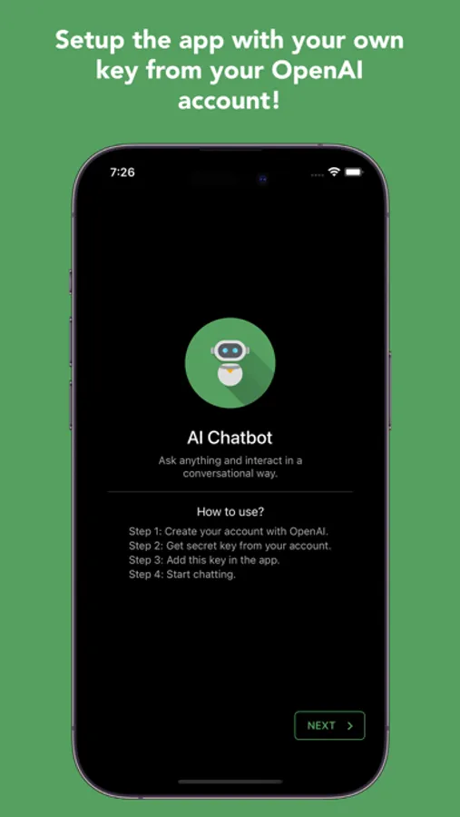 This is a Bring-Your-Own-key app and hence requires you to add your own secret key (or API key) to work. You can create your account with OpenAI by visiting https://platform.openai.com and obtain your secret key.