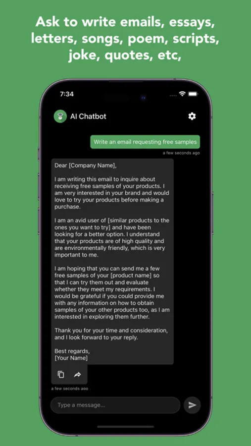 The ultimate AI assistant app to write essays, emails, stories, code in any language, captions, hashtags, promotional text, songs, poems, jokes, quotes, video scripts, etc., solve maths, suggest ideas, generate tweets, explain code and concepts... and much more!