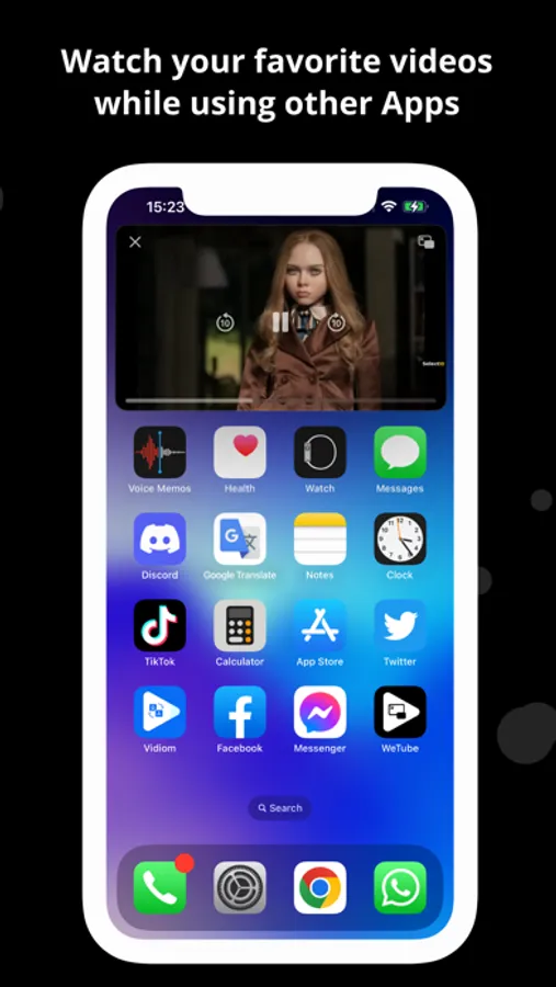 1. When reproducing any video, you can use the PIP icon from the upper left (two small pictures icon), your video will be shown on the screen (once you can do anything else with your iPhone).