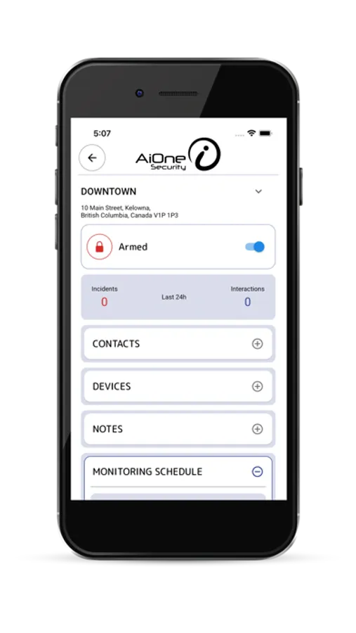 AiOne Security allows you to control your video monitoring system and view the status of your accounts, sites, and more!