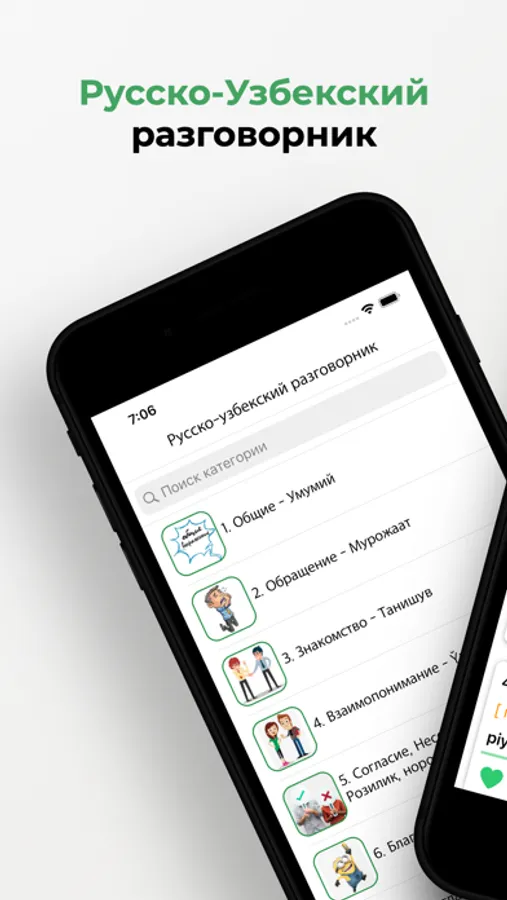 Русско-узбекский и узбекско-русский бесплатный офлайн разговорник с легким и функциональным интерфейсом, охватывающим более 5360 слов и фразы.