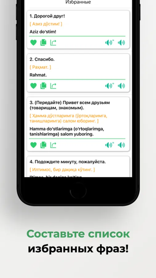 • Вы можете поделиться фразами и копировать в буфер обмен