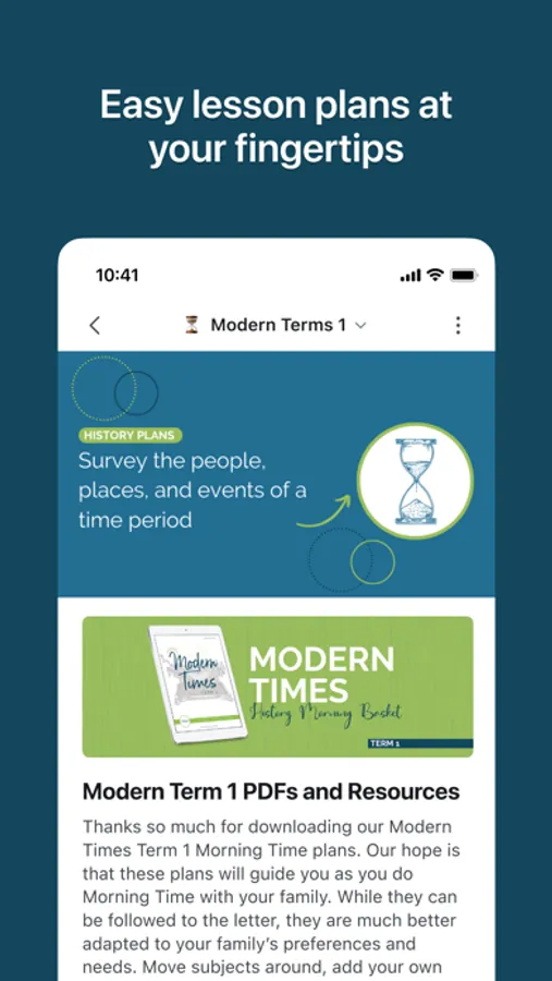 • Access to Your Morning Basket membership materials in one handy app (membership purchase required)