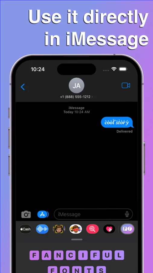 Fanciful Fonts does not collect any user information. All text generation happens on your device. Fanciful Fonts cannot read the content of your iMessage conversation.