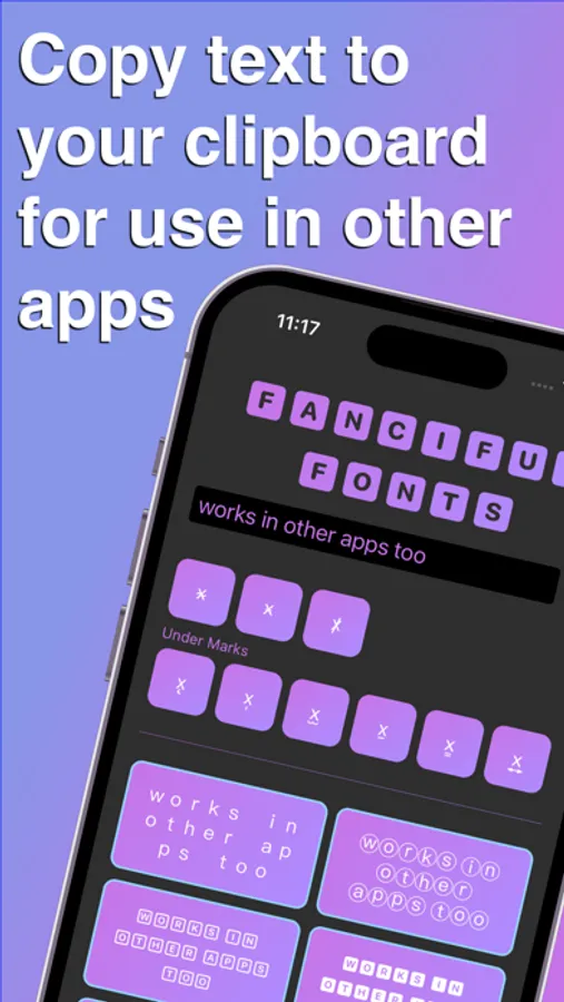 Do you wish that you could send formatted text over iMessage and other messaging platforms? Fanciful Fonts makes it easy! Choose from a variety of special Unicode fonts, which are built into every modern operating system. Your messages will be readable no matter the app or device.