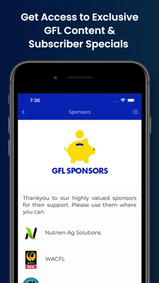 Nutrien Ag Solutions and the WA Country Football League are proud sponsors of the Nutrien Sport GFL App. The digital budget of The Goldfields Football League. Download the app to get scores and fixtures of the GFL, direct club links, the GFL sponsors and exclusive GFL content. Members can enjoy subscriber specials from the GFL Sponsors. Encourage local business and interact with the community direct through the app. Proceeds of every purchase through The Nutrien Sport GFL App goes directly back to the Goldfields Football League and its clubs.
