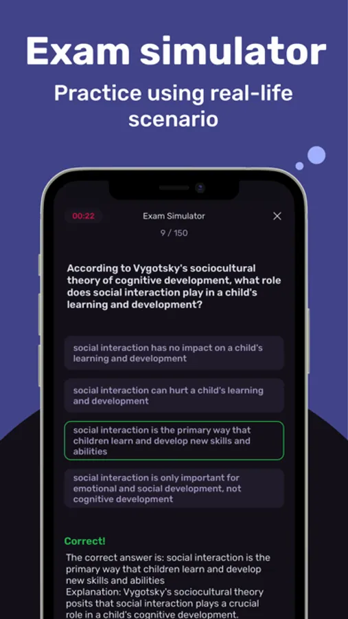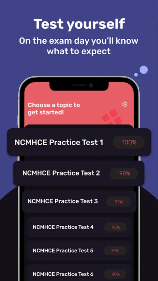 Get your NCMHCE score prediction based on how you pass the real exam simulator, and study the topics you need to revisit to improve your score.