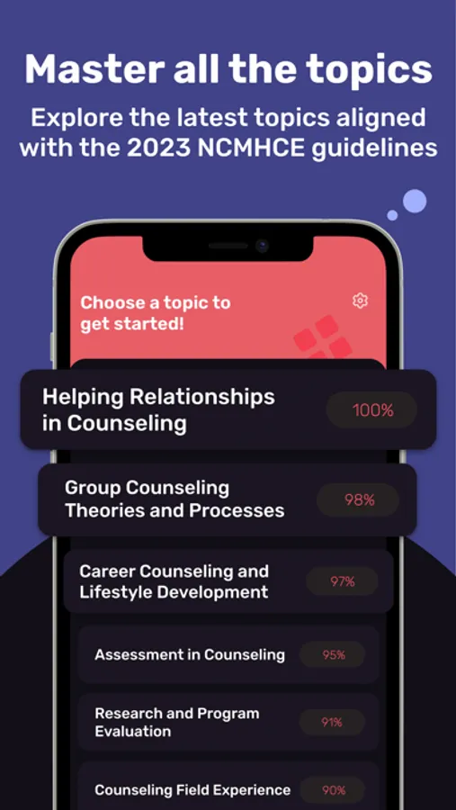Our goal is to give you all the information you need to pass the NCMHCE exam. All in one app. This study app directly aligns with the NCMHCE exam blueprint, giving you the preparation you need to achieve the highest score possible.