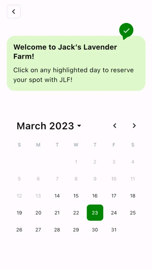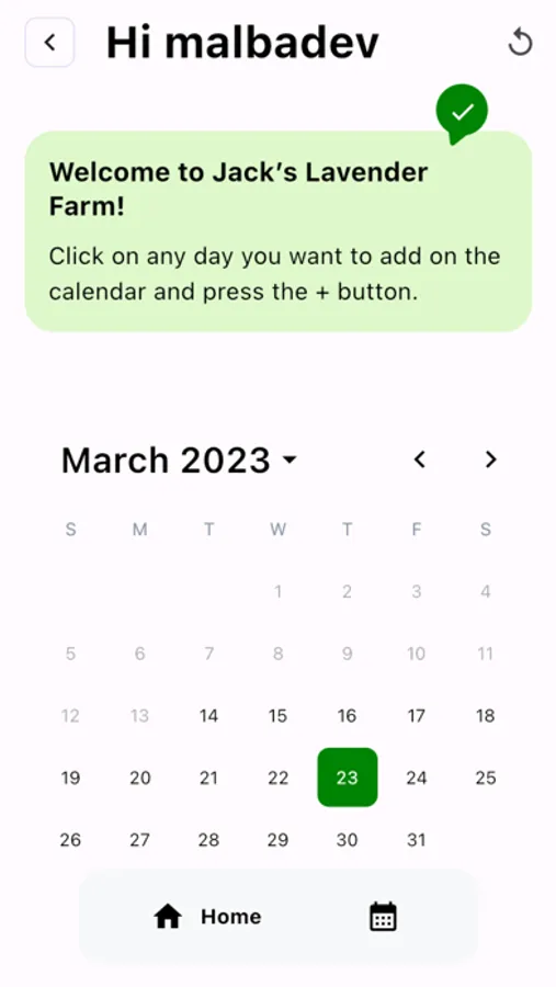 This app is designed to allow teens participating in Jack’s Lavender Farm to schedule which days they would like to be at the Farm or join other JLF events.