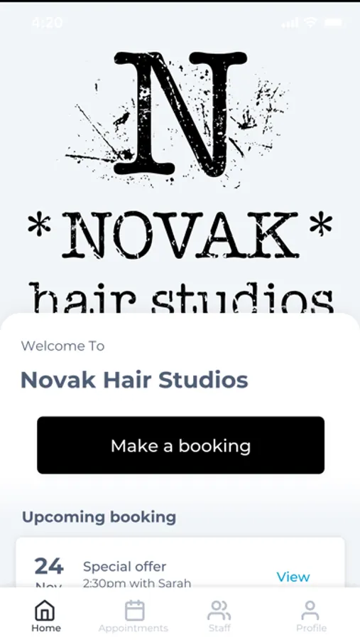The Novak Hair Studios app makes booking your appointments and managing your loyalty points even easier. You're just a few taps away from feeling good and looking great!