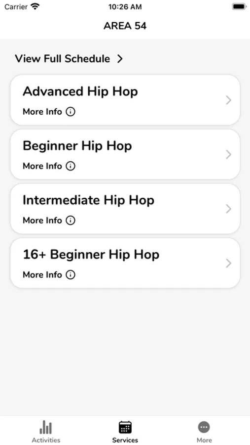 AREA 54 app lets you easily sign in, check account updates, and manage your classes anytime from anywhere with instant access to all of your important information.