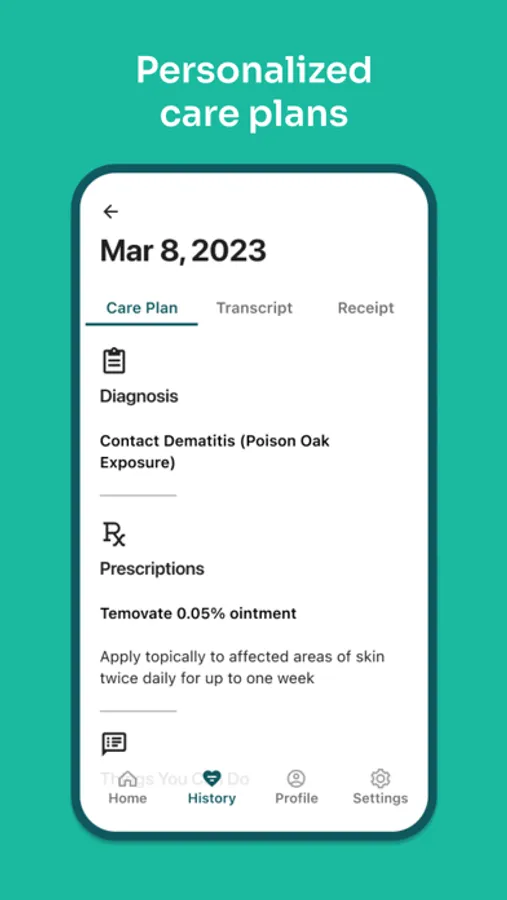 Virtual care just got better! No more waiting and no need to plan ahead with virtual care that’s on your schedule. On-demand chat is available 8 am to 8 pm every day with clinicians that can diagnose and treat common conditions, ranging from cough and flu to skin rashes and urinary tract infections. Our clinicians work with you to create a personalized care plan, complete with treatment details, follow-up appointments, prescriptions, and lab tests. Care plans and chat conversations are saved in the app, so you always have access.