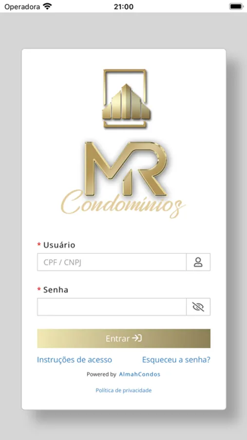 Este aplicativo é exclusivo para usuários da MR ADM CONDOMÍNIOS.