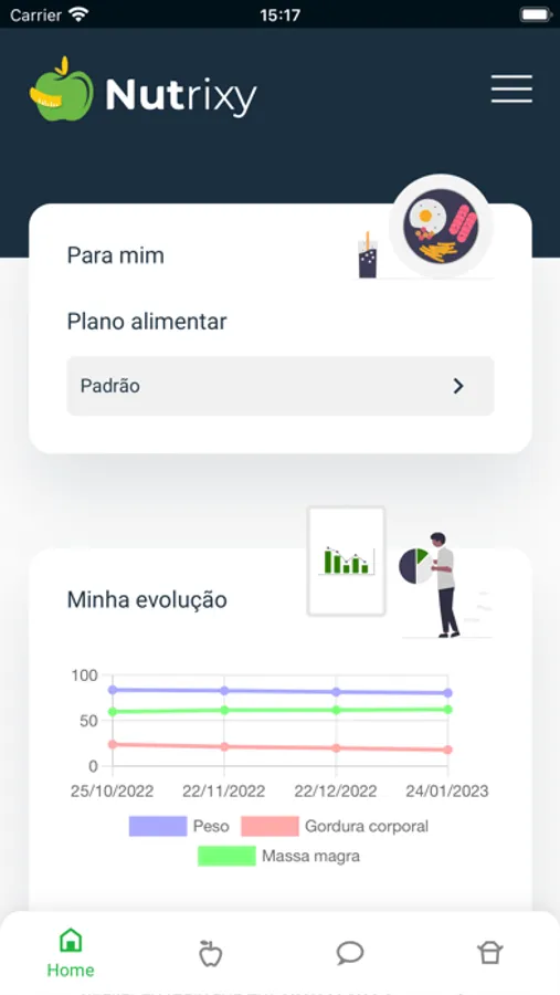 - Visualizar mensagens do seu nutricionista para um acompanhamento de qualidade.