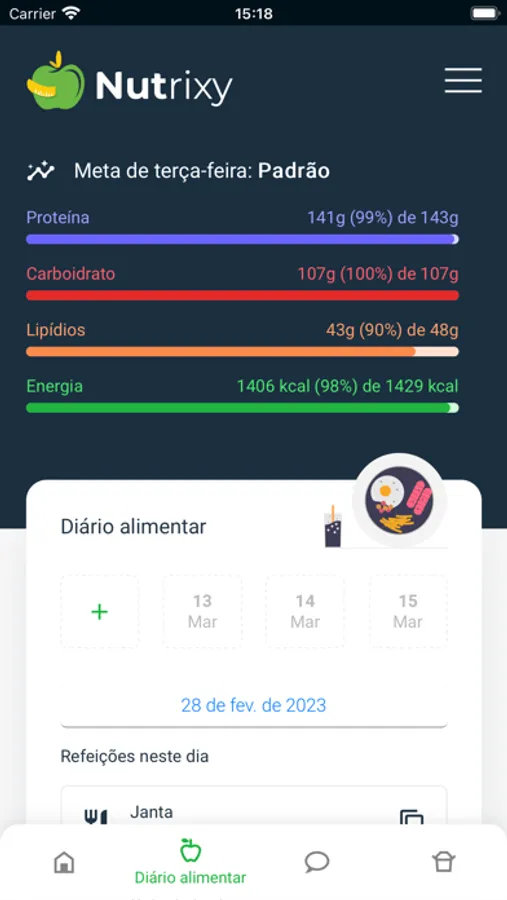 O que só o App Nutrixy tem: Sistema avançado de Diário Alimentar.