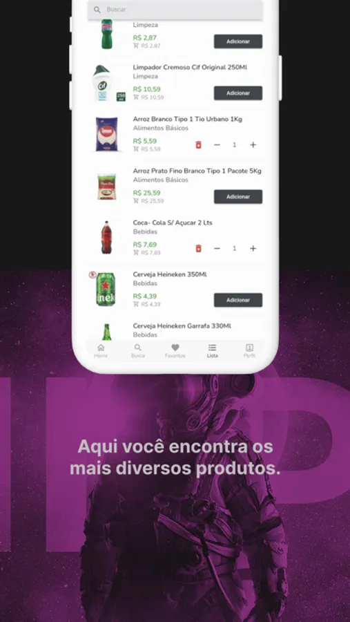 Com uma ampla variedade de produtos, desde alimentos frescos até itens de limpeza doméstica, nosso aplicativo oferece a conveniência de fazer compras online sem ter que sair de casa.