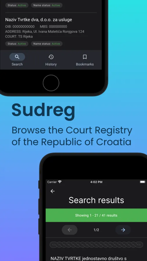 Introducing Sudreg, a mobile client for the Court Registry of the Ministry of Justice and Public Administration of the Republic of Croatia, now available on the App Store!
