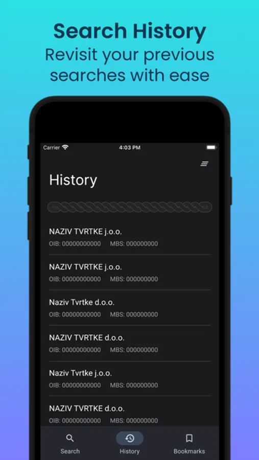 But that's not all - the app also features bookmarks, allowing you to save and retrieve business entity information easily for future reference. Plus, the search history feature lets you keep track of your past searches, making it even easier to find the information you need.