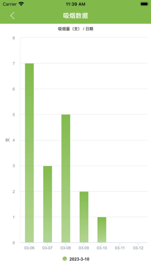 本APP通过列表、图表等多种数据展示形式,帮助用户更直观的看到控烟数据、了解吸烟危害及学习戒烟知识;