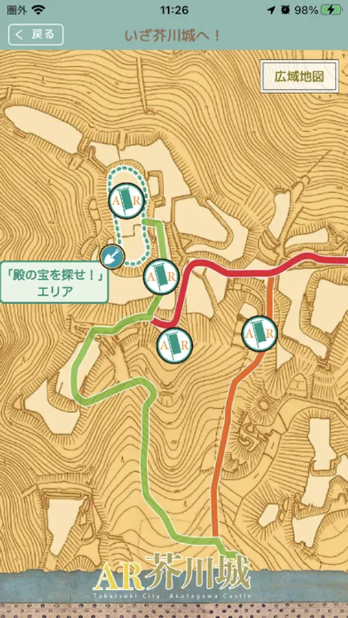 芥川城は、高槻市大字原の三好山(標高約183m)に所在する中世城郭です。