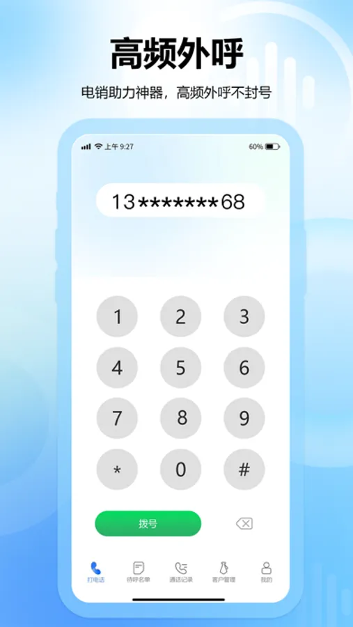 6、智能防封功能:有效过滤敏感客户号码,多种外呼策略,外呼控频,有效避免高频封号。