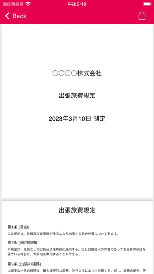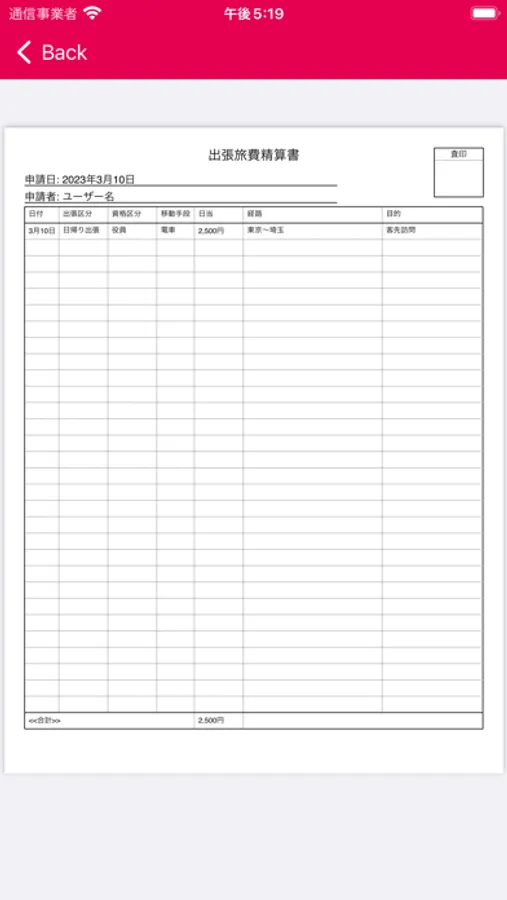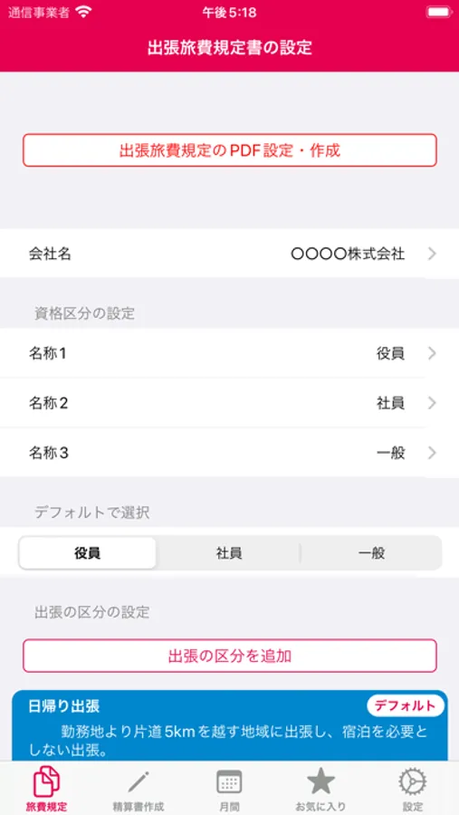 このアプリは、簡単に出張旅費規定書の作成ができます。