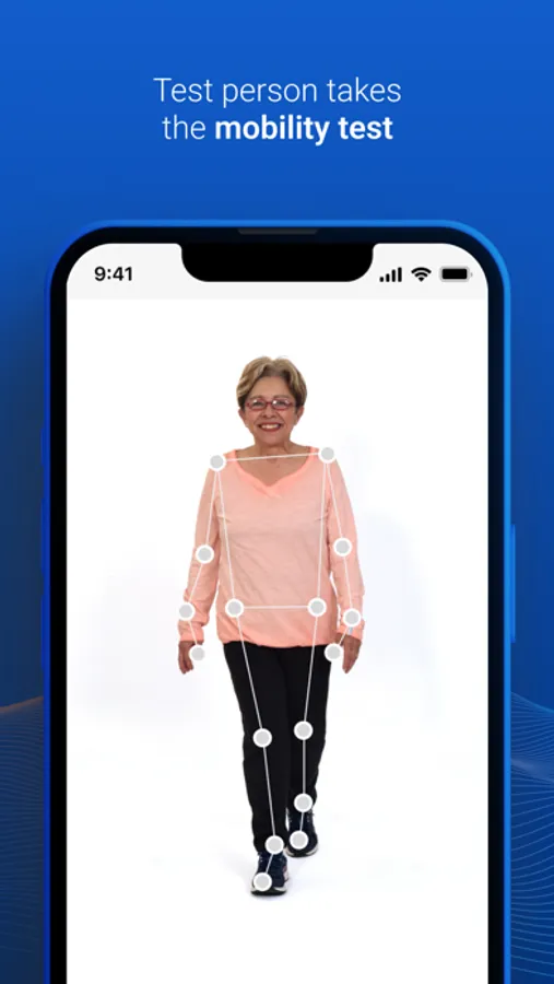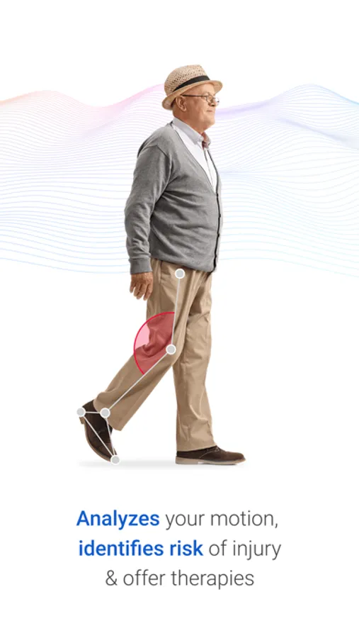 SeniorLife app assesses the risk of injury by analyzing motion with AI. The app is used by a care provider to assess health risks in both active and frail seniors. The app offers many types of “mobility tests” that use physician recommended methods. Using computer vision and other proprietary algorithms the SeniorLife App analyzes mobility patterns, generates a detailed scorecard and predicts specific health risks. The app recommends corrective therapies. When tested in regular intervals, one can monitor the condition and measure results of the therapy.
