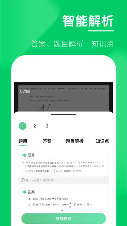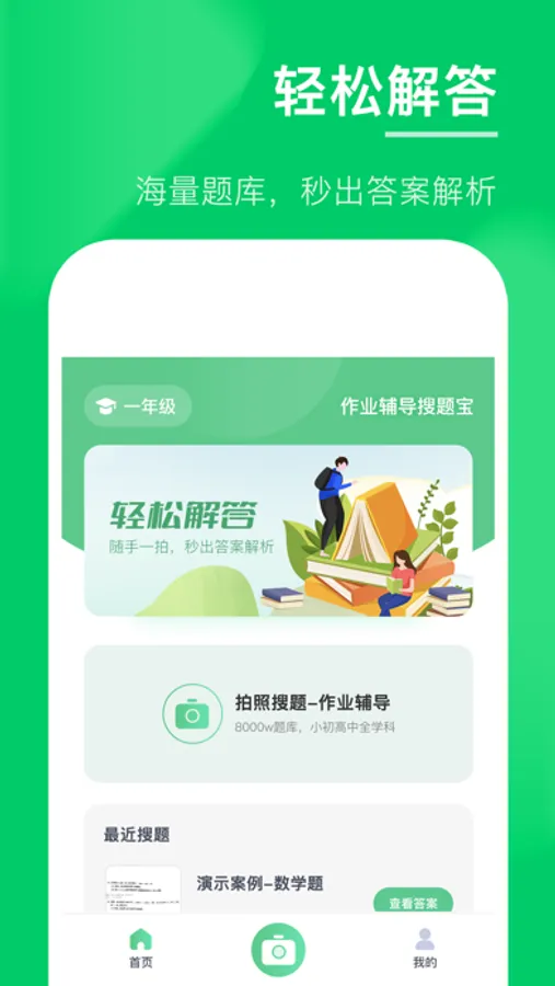 1.拍照搜题:拍照作业,解答立现,学习解题思路!