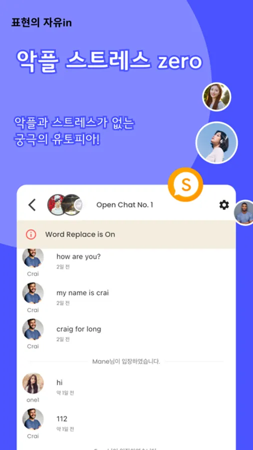 독버섯 같은 상대의 언어를 내가 원하는 즐거운 표현으로 바꿔주는 마술 같은 스트레스 sero 시스템, 궁극의 유토피아 커뮤니티를 세계인들과 경험 공유하세요.