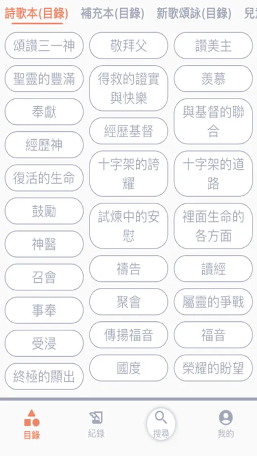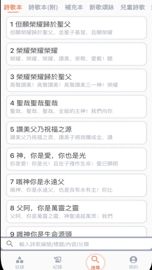 此外,我們還提供了一個方便的主日詩歌播放列表,讓您可以輕鬆地將喜愛的詩歌收藏到您的主日崇拜中播放,也提供了簡單易懂的分類包含大本詩歌目錄、補充本目錄、新歌頌詠目錄,讓你能快速找到想要的詩歌,想要開始您的靈性旅程嗎?立即下載我們的基督教詩歌播放軟體"Hymns of Life 詩歌、聖歌" ,感受主的慈愛與恩典,向祂唱出我們的讚美與感謝。快來試試看吧!