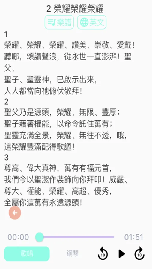 我們的應用程式是基督教詩歌播放軟體,為您提供一個豐富的靈修音樂體驗。不論您在教會聚會、主日、家庭中、或獨自一人,我們的應用程式都可以讓您輕鬆地聆聽、唱頌詩歌或是聖歌。