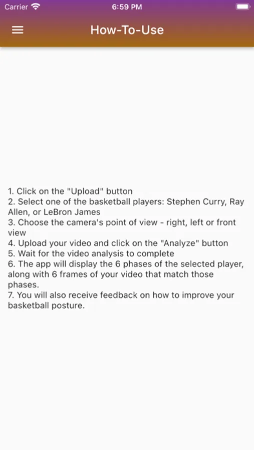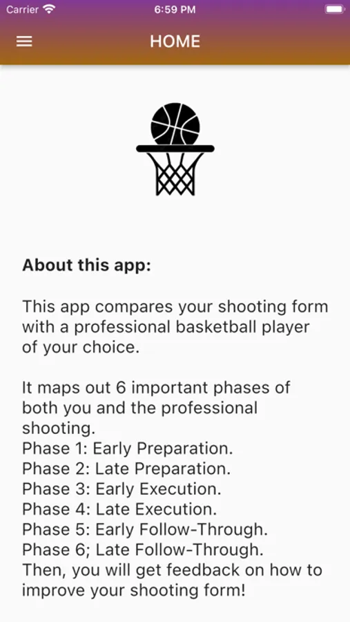 This app is designed to help basketball players correct their shooting forms There will be multiple professional players to compare your shot with, alongside with mutiple angles to perfect it in every way.