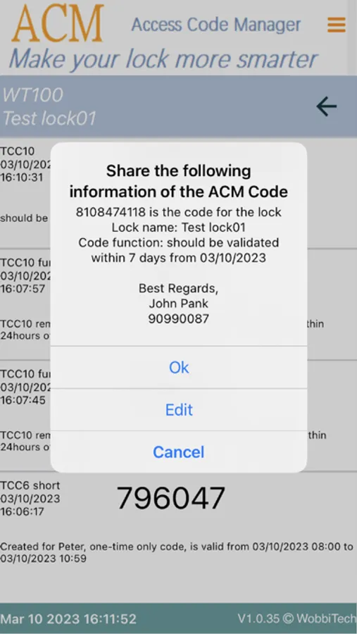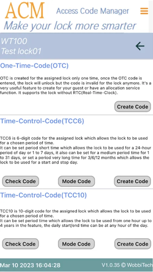 Access Code Manager(ACM) is a mobile phone App to provide the code management functions for ACM supported electronic lock, working with ACM App some code accessing electric lock can be upgraded as smart lock with more modern smart phone APP features.