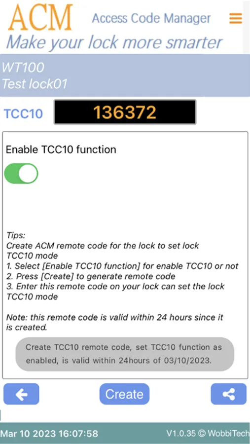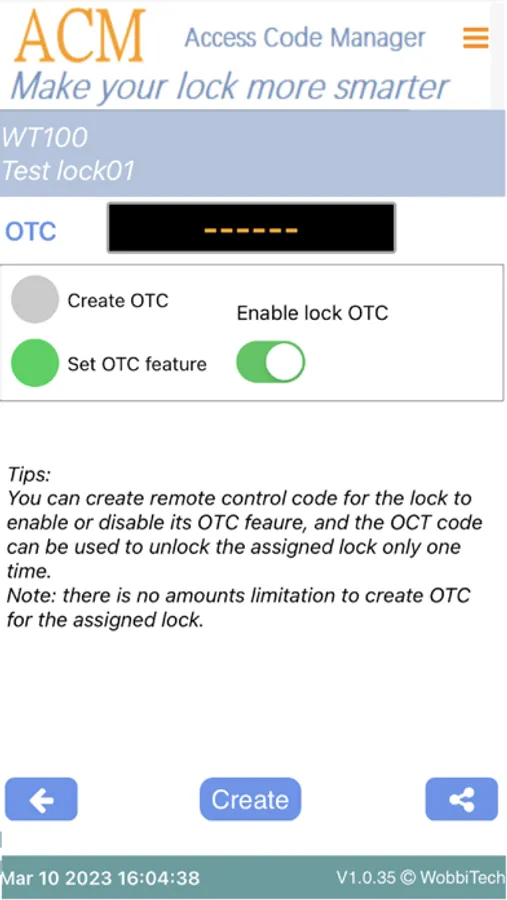 Electronic lock which firmware is upgraded to support ACM OTC, TCC6 or TCC10, such as lock model NL02P, WT100, WT200 and DA02 etc.