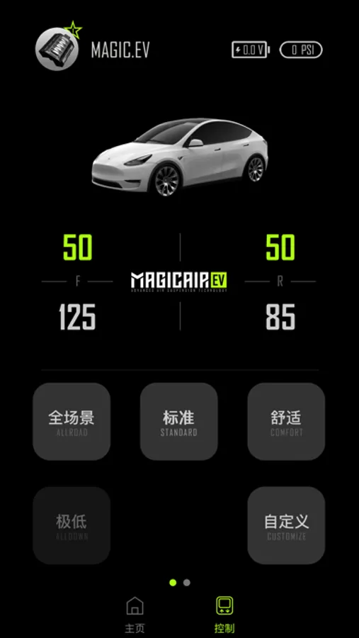 MagicAir EV,用于控制MagicAir EV气动设备,方便监测气压、车身高度、气罐压力等数据,还可切换车身高度模式、查看安装设备的历史。